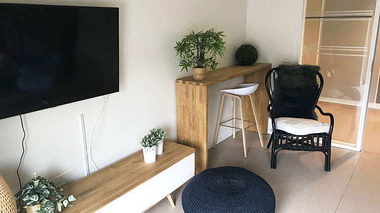 Alle borgere har egen lejlighed med et lille køkken/entre, badeværelse, stue og soveværelse.